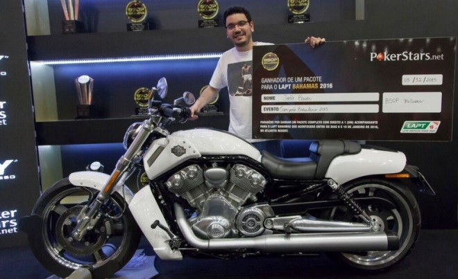 Não teve como, o Goiano João Bauer veio com tudo e levou a tão esperada posição de Campeão Brasileiro de Poker 2015! Juntamente com esse grandioso título, o Campeão levou uma V-ROD Muscle branca da Harley-Davidson exposta no salão Golden Hall, todos os buy-ins dos Main Events do BSOP 2016 e um pacote com tudo pago para jogar o torneio principal do PCA (PokerStars Caribbean Adventure)!!